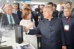О новых технологиях у стенда Академии наук Татарстана на выставке «Kazan Oil, Gas & Chemistry» в рамках ТНФ главе Татарстана Рустаму МИННИХАНОВУ рассказала вице-президент Лейсан АБЗАЛИЛОВА.