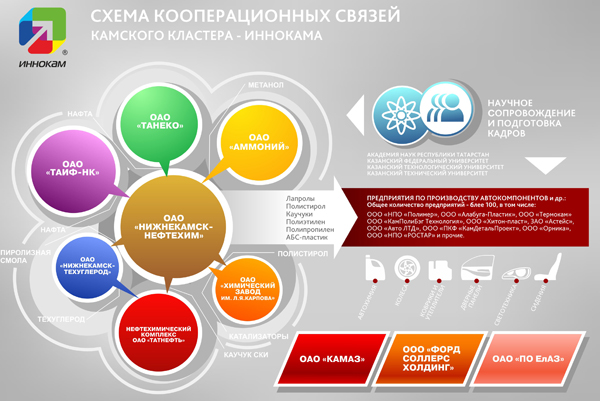 Именно пересечение крупнейших секторов экономики, соединение цепочек создаваемой добавленной стоимости в единую инновационную технологическую платформу определяет синергетический эффект Камского кластера.