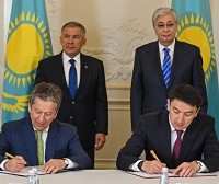 Генеральный директор ПАО «Татнефть» Наиль МАГАНОВ и председатель правления НК «КазМунайГаз» (КМГ) Магзум МИРЗАГАЛИЕВ подписали соглашение о намерениях по реализации геологоразведочного проекта Каратон-Саркамыс в Атырауской области Казахстана. Подписание состоялось в Санкт-Петербурге на полях Петербургского международного экономического форума в ходе встречи президентов Казахстана и Татарстана Касым-Жомарт ТОКАЕВА и Рустама МИННИХАНОВА. Об этом Информагентство «Девон» узнало из сообщений пресс-служб обеих компаний.