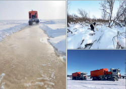 Геофизики организовывали проминки на акватории. Они намораживали и строили дамбы на участках, где толщина льда была недостаточной для работы вибрационных источников. С учётом того, что вес виброустановки составляет 42 тонны, толщина льда должна быть не менее одного метра.